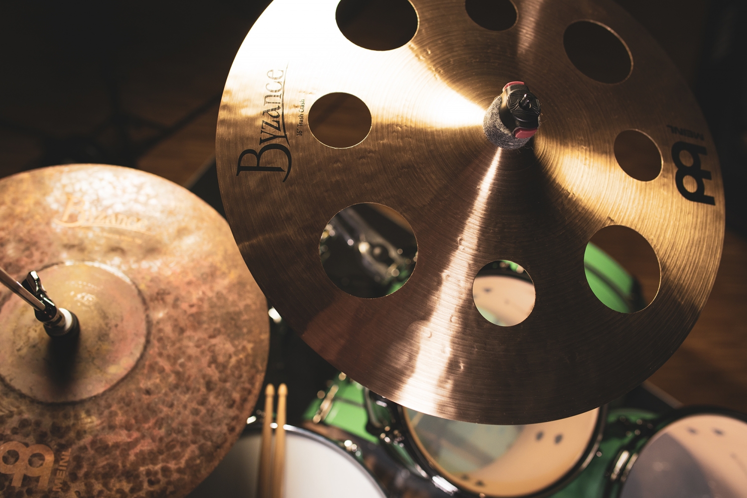 Genom att ta bort material från en cymbal rör sig ljudet snabbare och försvinner från cymbalen, vilket skapar snabb respons och snabb decay som dessa cymbaler är kända för. Hålens storlek, form och placering påverkar också hur trashig eller mörk cymbalen kommer att låta.