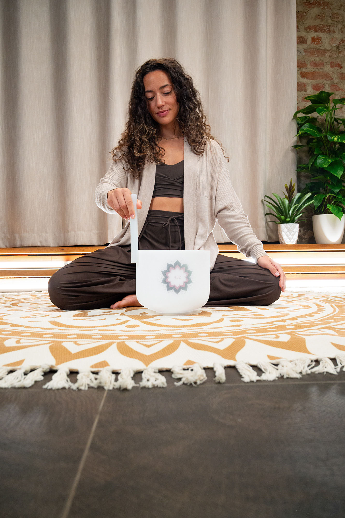 Du kan använda Crystal Singing Bowls för en mängd olika ändamål: Chakraläkning, meditation, ljudterapi, yoga, att förbättra din hemliga Fengshui, justera ditt känslotillstånd eller till och med för rumsdekoration.Denna kristallsångskål är stämd till 432 Hz, ofta kallad "naturlig tonhöjd" på grund av dess resonans med naturen och människokroppen.