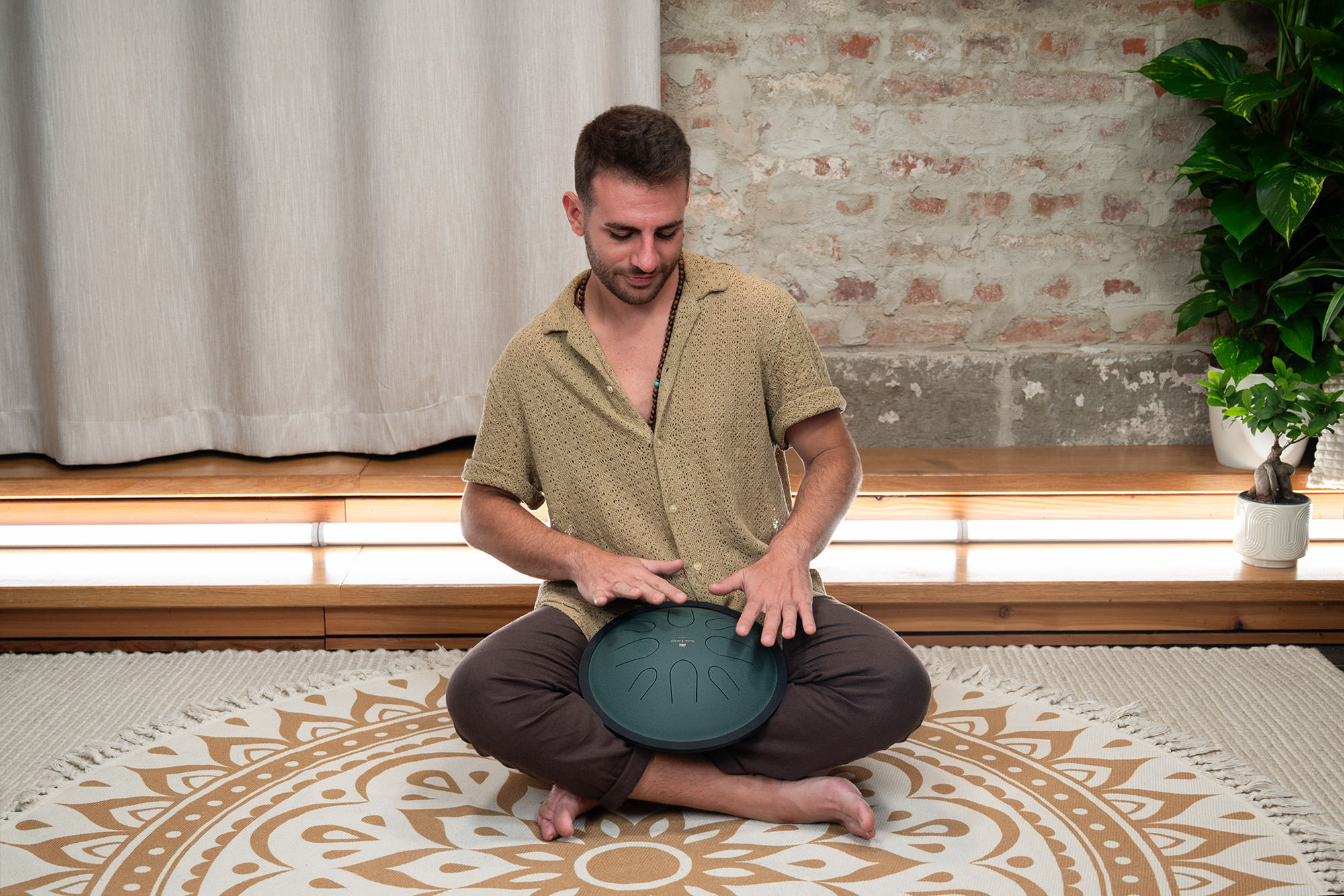 Tack vare sin kompakta storlek kan den placeras bekvämt i knät eller på vilken plan yta som helst, vilket gör den till en idealisk följeslagare för resor, meditation eller avslappnade jamsessioner.