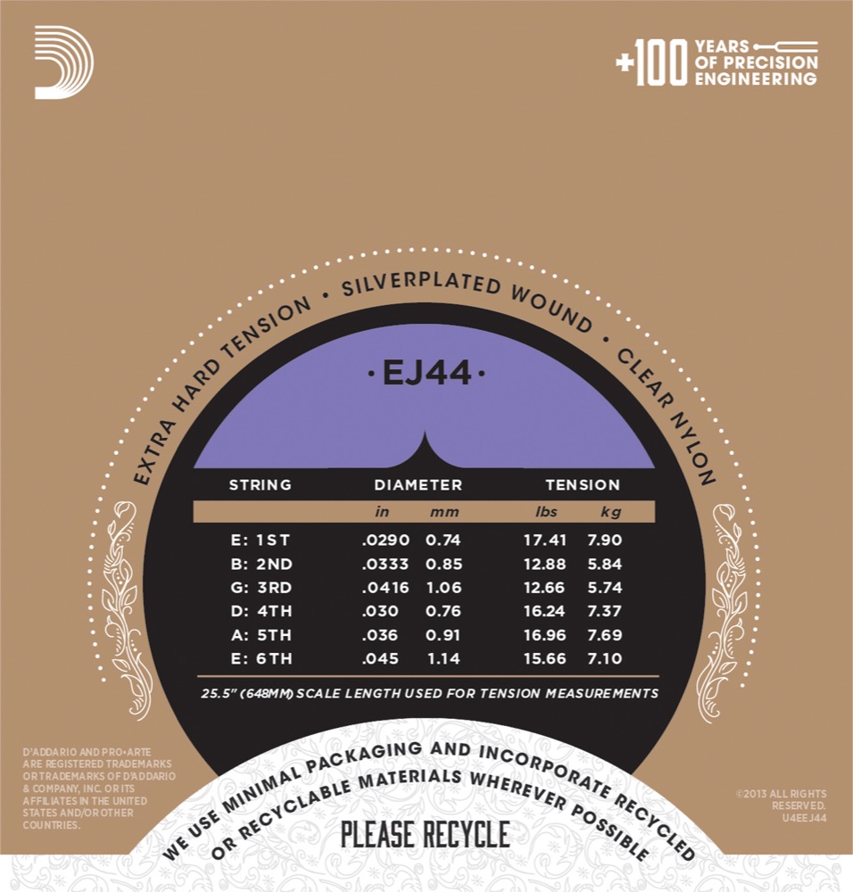 • Strängtjocklekar: Trebles .0290, .0333, .0416 Basses .030, .036, .045.
