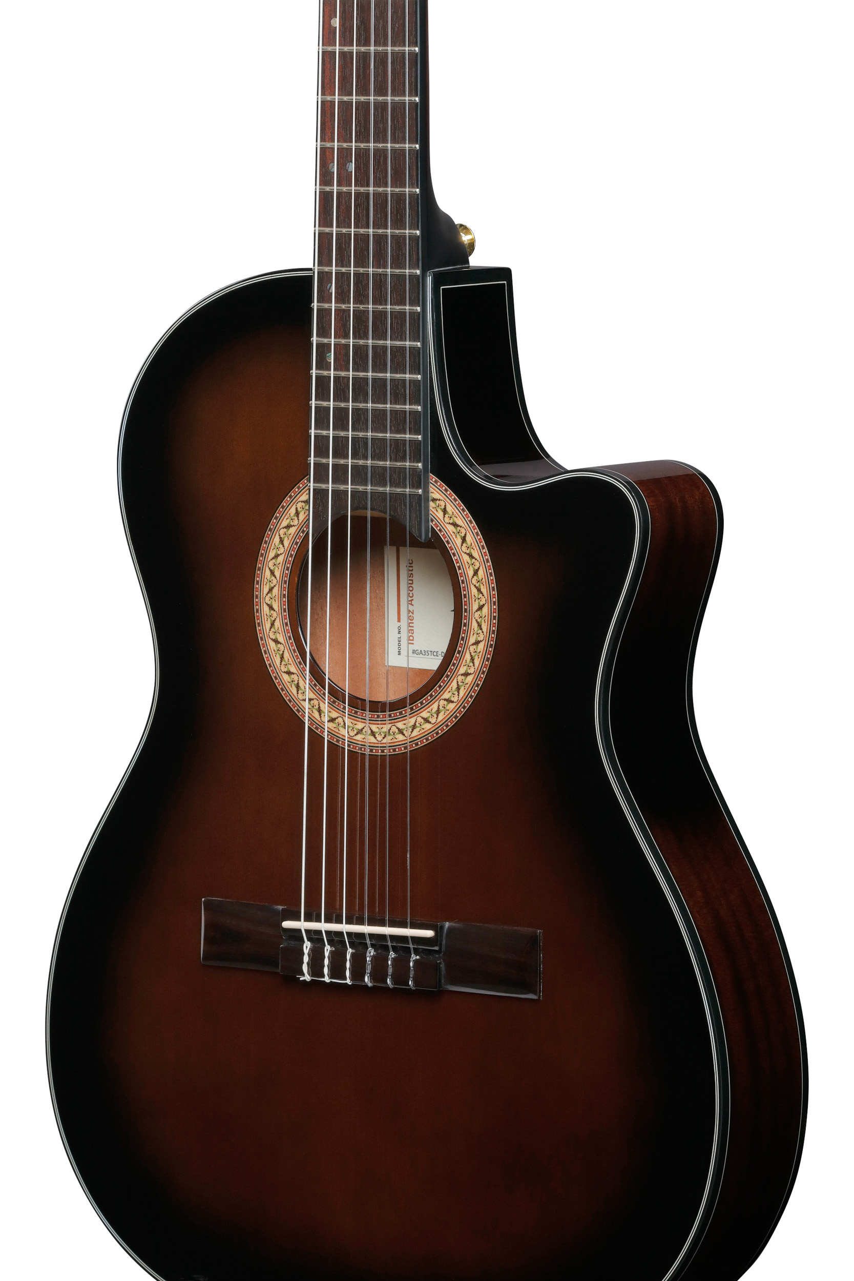 GA35TCE är en elektrifierad klassisk gitarr med tunnare kropp och smalare hals (46mm) vid sadeln.