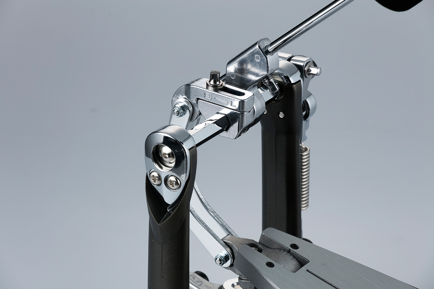 Drummers have come to recognize and appreciate independent bass drum footboard angle adjustment as an important function to help customize a personal feel. This inspired us to focus on the Dyna-Sync design and create a completely new and unique footboard angle adjustment. The Dyna-Sync footboard angle design integrates into the clam-shaped connection point between linkage and footboard and is fully adjustable to deliver a totally personalized pedal angle adjustment.
