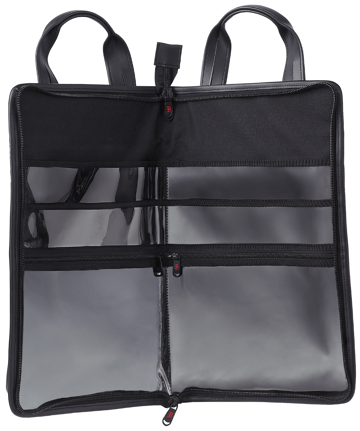 Exklusiv stickbag med väl tilltagen plats för stockar, mallets, noter. Genomskinliga innerfack gör att du har full koll på vad som finns i facken.