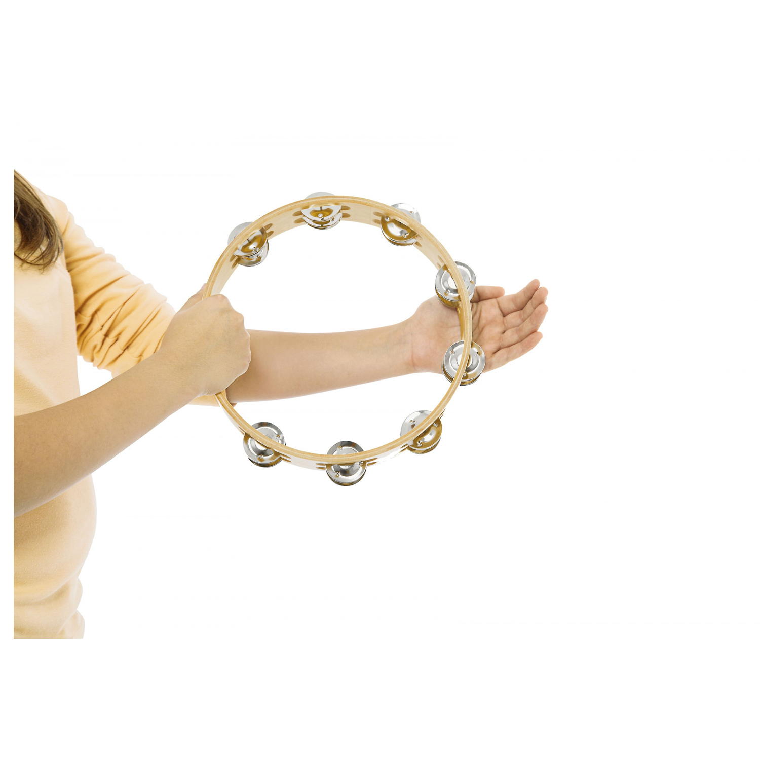 NINO15. Trätamburin som har en robust ram med dubbla rader av sex jingle-par som ger ett snyggt pärlande ljud.