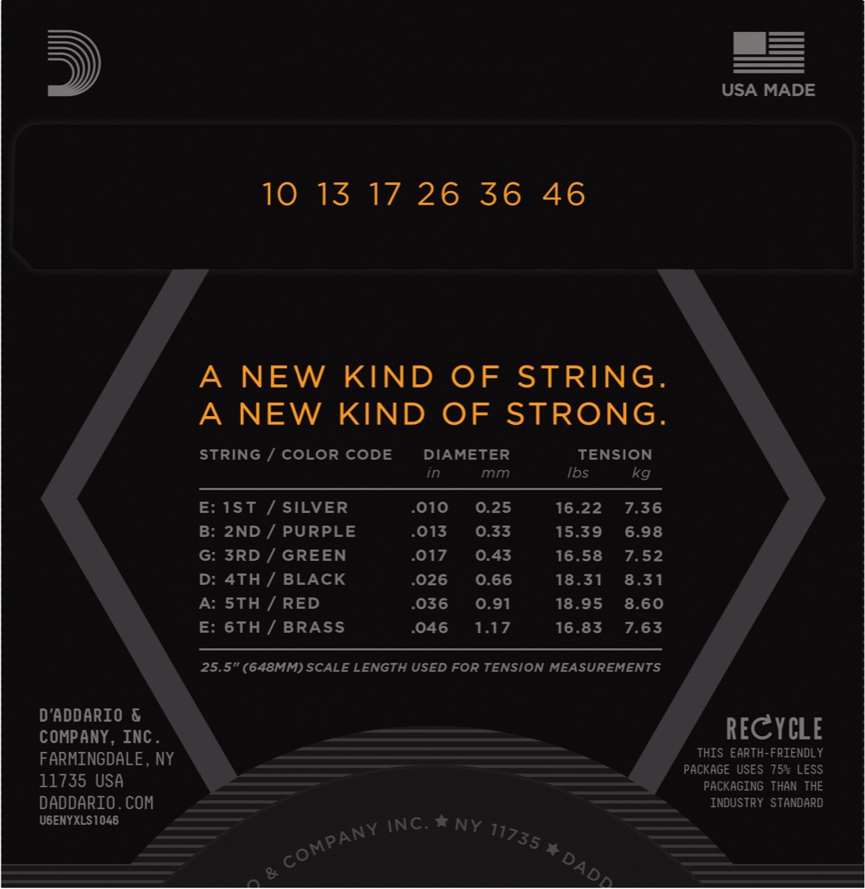Detta är det starkaste set elgitarrsträngar D'Addario någonsin tillverkat. Hållbarare än alla sina föregångare, sätter sig fortare när du strängar om, håller stämningen bättre, spunna strängar som har mer output och plain-strängar som är mindre platta och mer livfulla (ljudmässigt) . Resultatet är något du aldrig upplevt tidigare, oöverträffad styrka och stämningsstabilitet. PLAY LOUD, PLAY STRONG, PLAY FEARLESSLY!