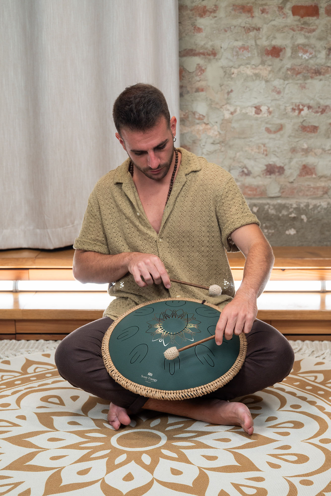 Meinl Sonic Energy Octave Steel Tongue Drum är tillverkad av högkvalitativt rostfritt stål. Den har en central bas-ton i mitten plus åtta toner runt omkring. Dessa åtta toner består av två tungor vardera som levererar tonen i två oktaver. Detta skapar ett underbart, meditativt ljud som liknar tonen från en handpan. Längst ner på trumman hittar du ljudhålet, som kan stängas med en silikonplugg för att göra ljudet ännu mer kompakt.