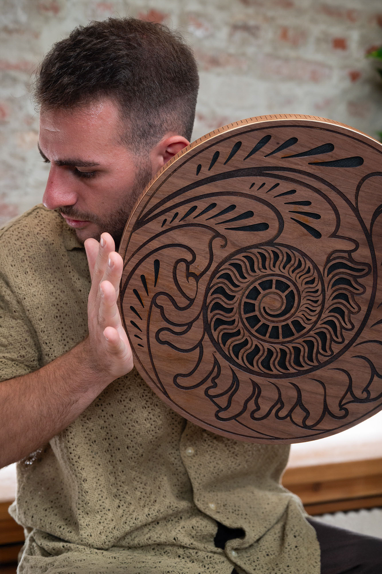 Raindisk 15'', Ocean sound Fibbonaci inspired carv