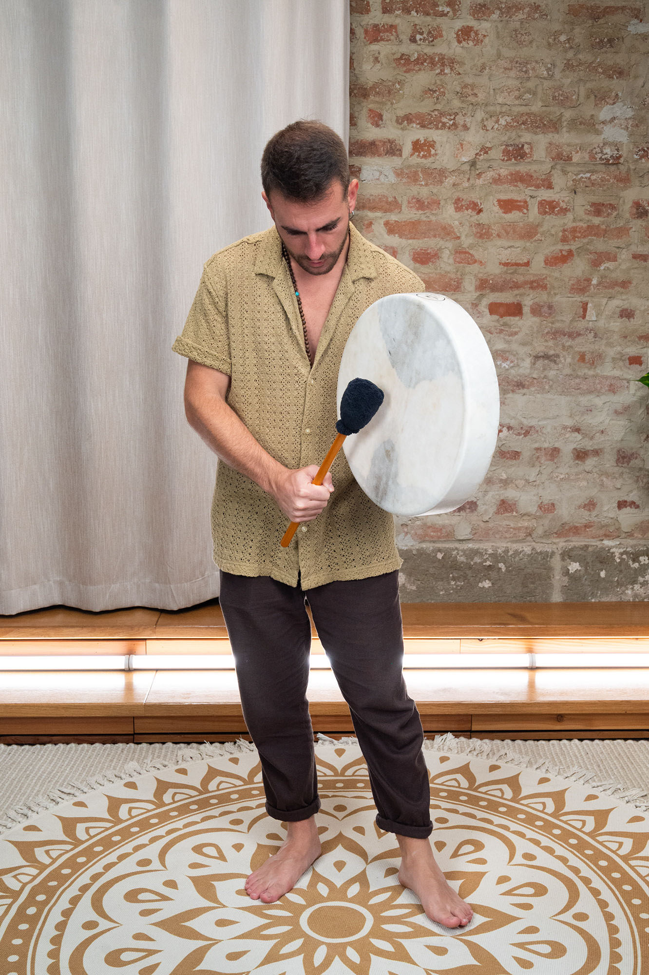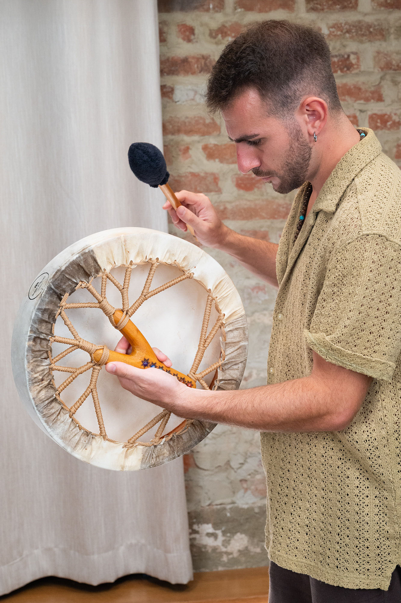 Observera: Eftersom våra ramtrummor är gjorda av naturliga material är varje instrument unikt, vilket kan resultera i små variationer i hudens textur.