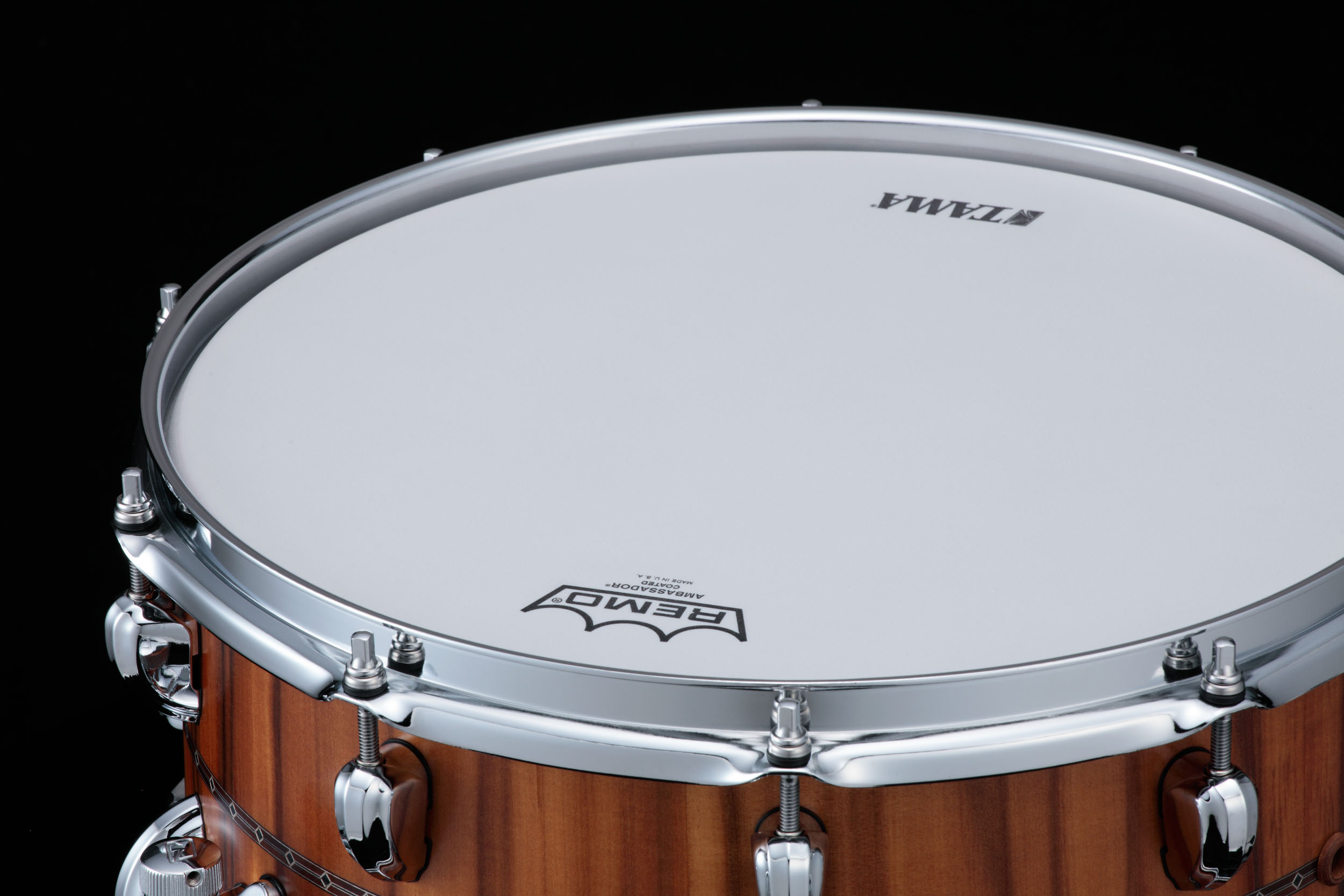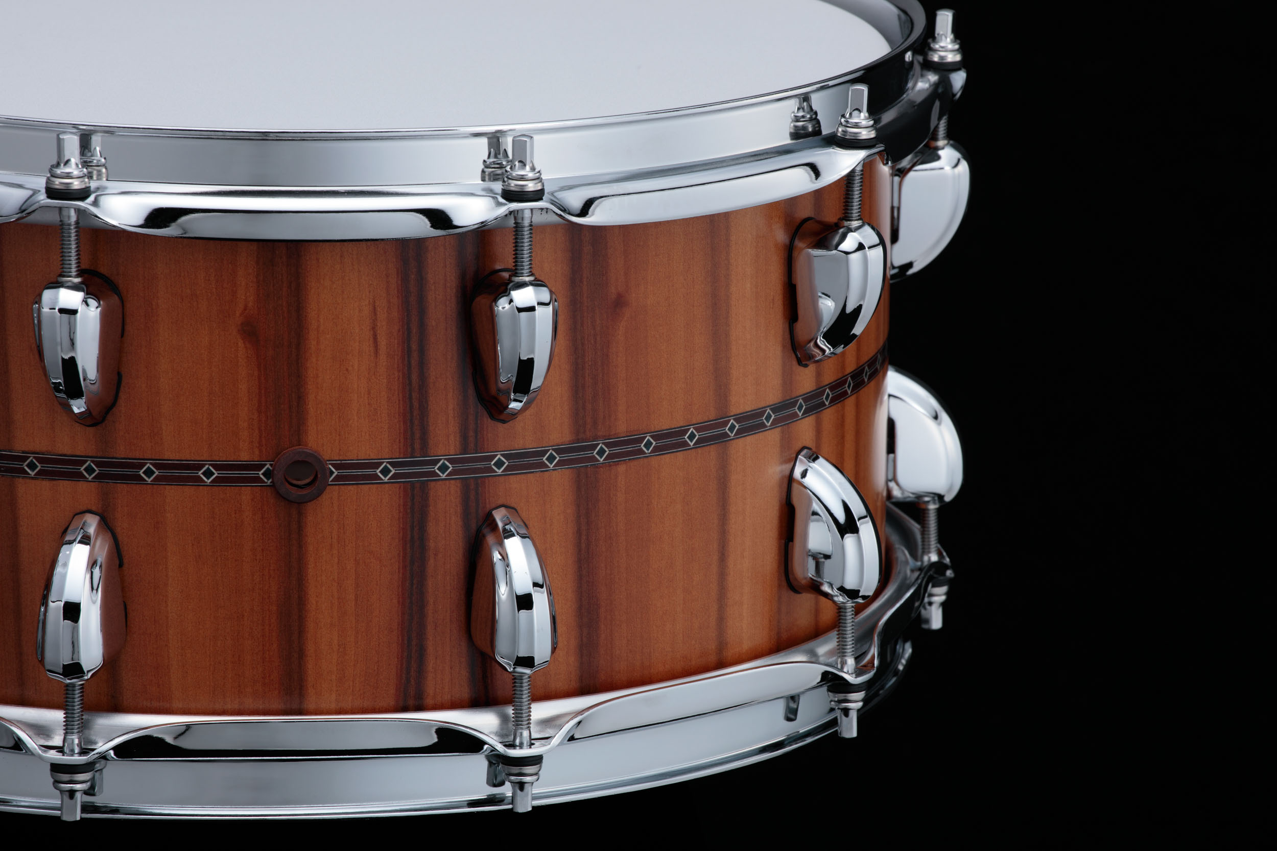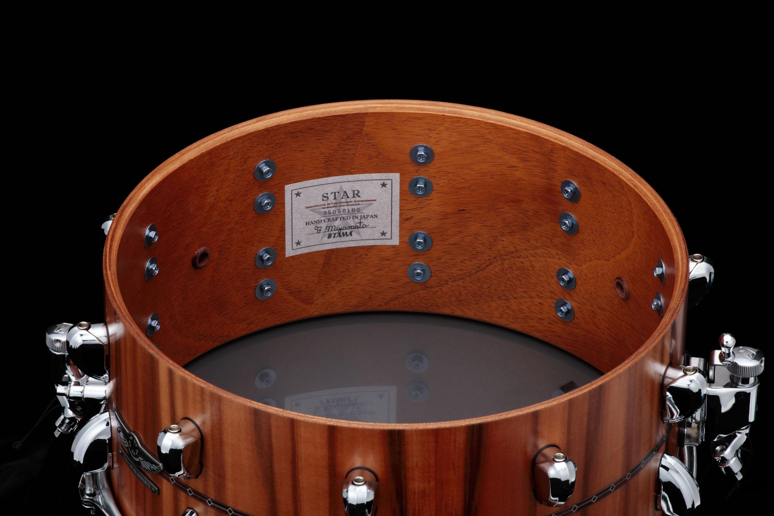 Denna STAR Reserve är en limiterad modell med en extra tjock mahognystomme på 9mm av 11ply G-Mahogany. Detta ger en varm, fyllig ton med förstärkt djupt register och med Super Sensitive sejarmattan ger den ett tydligt och relativt torrt sejarsound, perfekt för delikata spökslag. För att bevara Mahoganys öppna och resonanta ljud används 2,3 mm Mighty Hoops, pressade stämsargar. Virveltrumman utmärker sig visuellt med sin förfinade estetik som har en yttre plywood av Tineo, ett träslag känt för sin naturliga rödbruna ton och frodiga vertikala ådring.