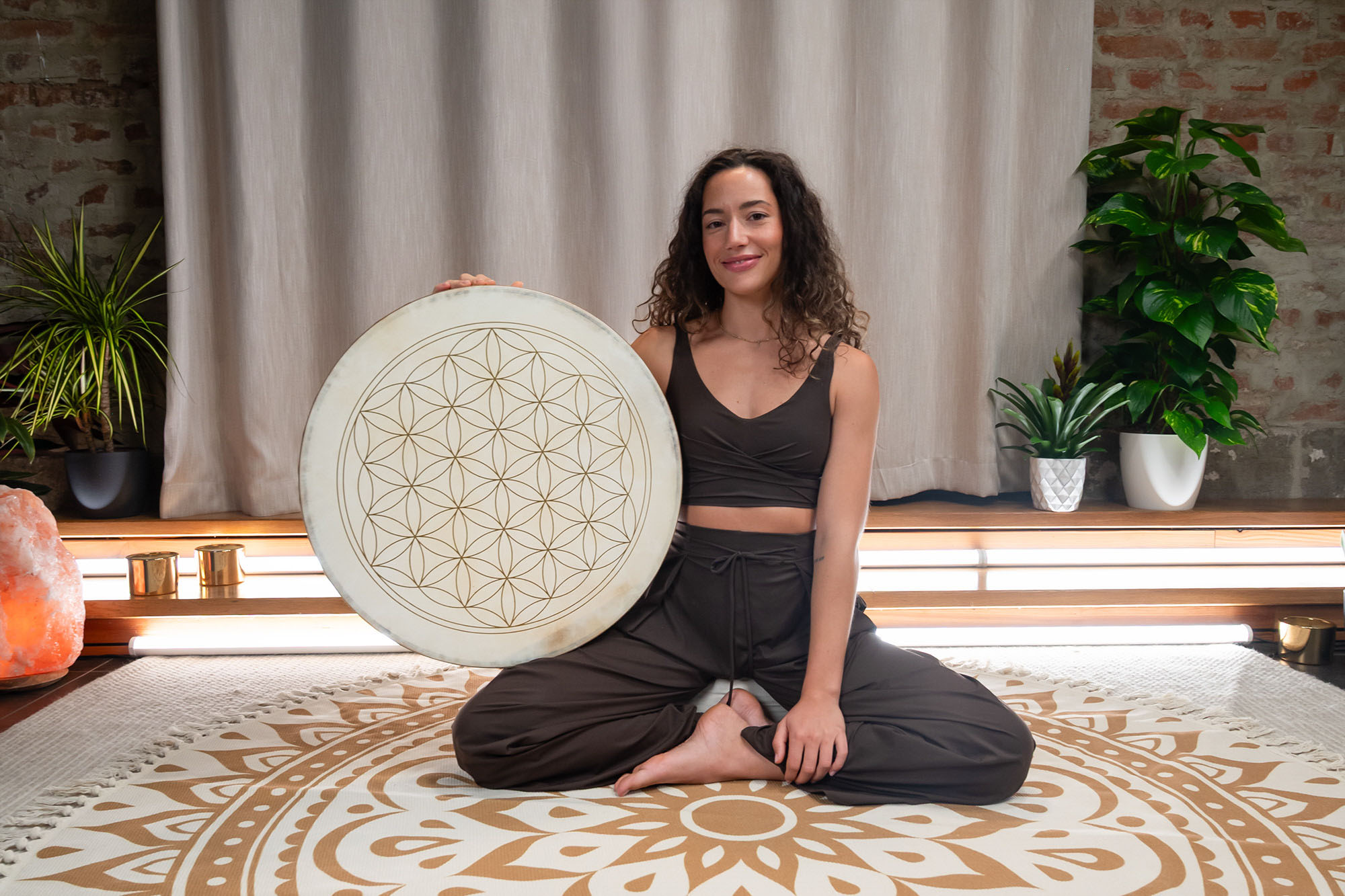 Detta lugnande ljud gör wave drum till ett mångsidigt instrument för meditation, ljudterapi eller för att lägga atmosfäriska lager till musikframträdanden. Flower of Life Wave Drums är byggda med två naturliga getskinnshuvuden och har en speciell mjuk fyllning inuti, vilket skapar ett särskilt mjukt vågljud. Dekorerade med den symboliska Livets blomma bär de också på en stark visuell och andlig närvaro.
